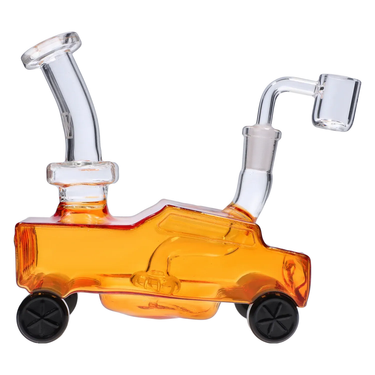 Cruise through your sesh in style. This standout glass bong features a lowrider-inspired silhouette crafted from durable orange glass. A built-in showerhead percolator cools and filters smoke for consistently smooth hits, while the car-shaped body brings serious personality. The motor doubles as the mouthpiece, blending clever design with full functionality. It’s bold, playful, and guaranteed to turn heads every time it’s in rotation.