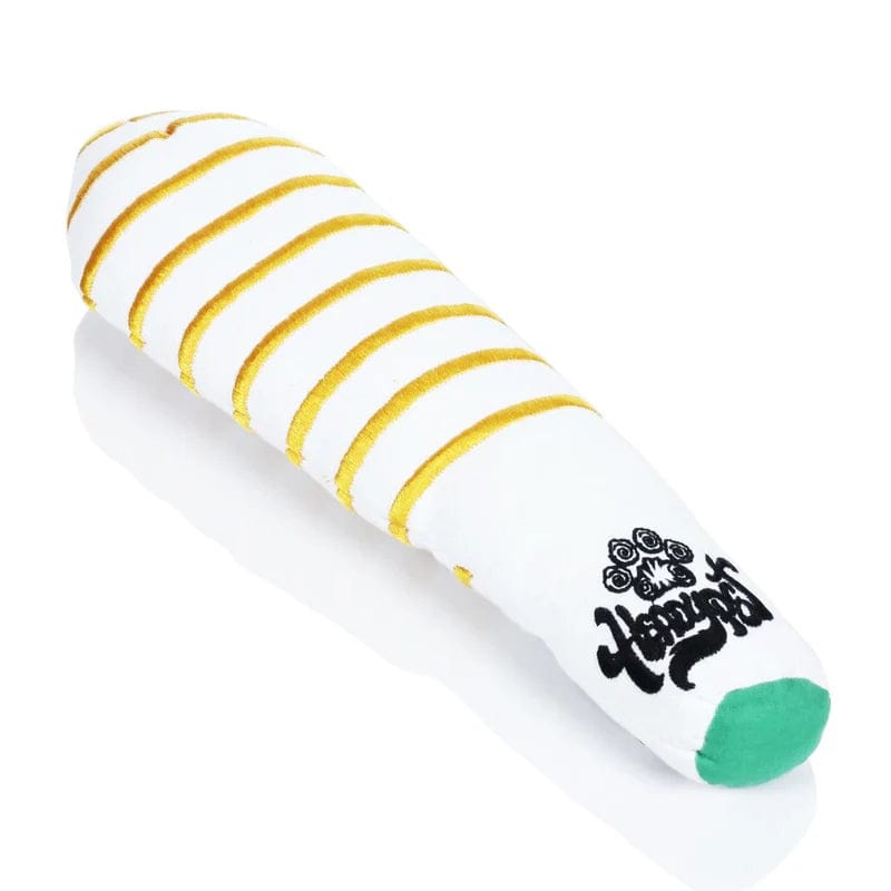 Now your dog can be part of the sesh. Our HeadyPet Twax Joint Dog Toy is a soft play version of a beautifully rolled blunt dressed with concentrates and sure to be every pup's favorite. Featuring a squeaker and crinkly noisemakers, this toy will keep the attention of even the hardest-to-please dogs!