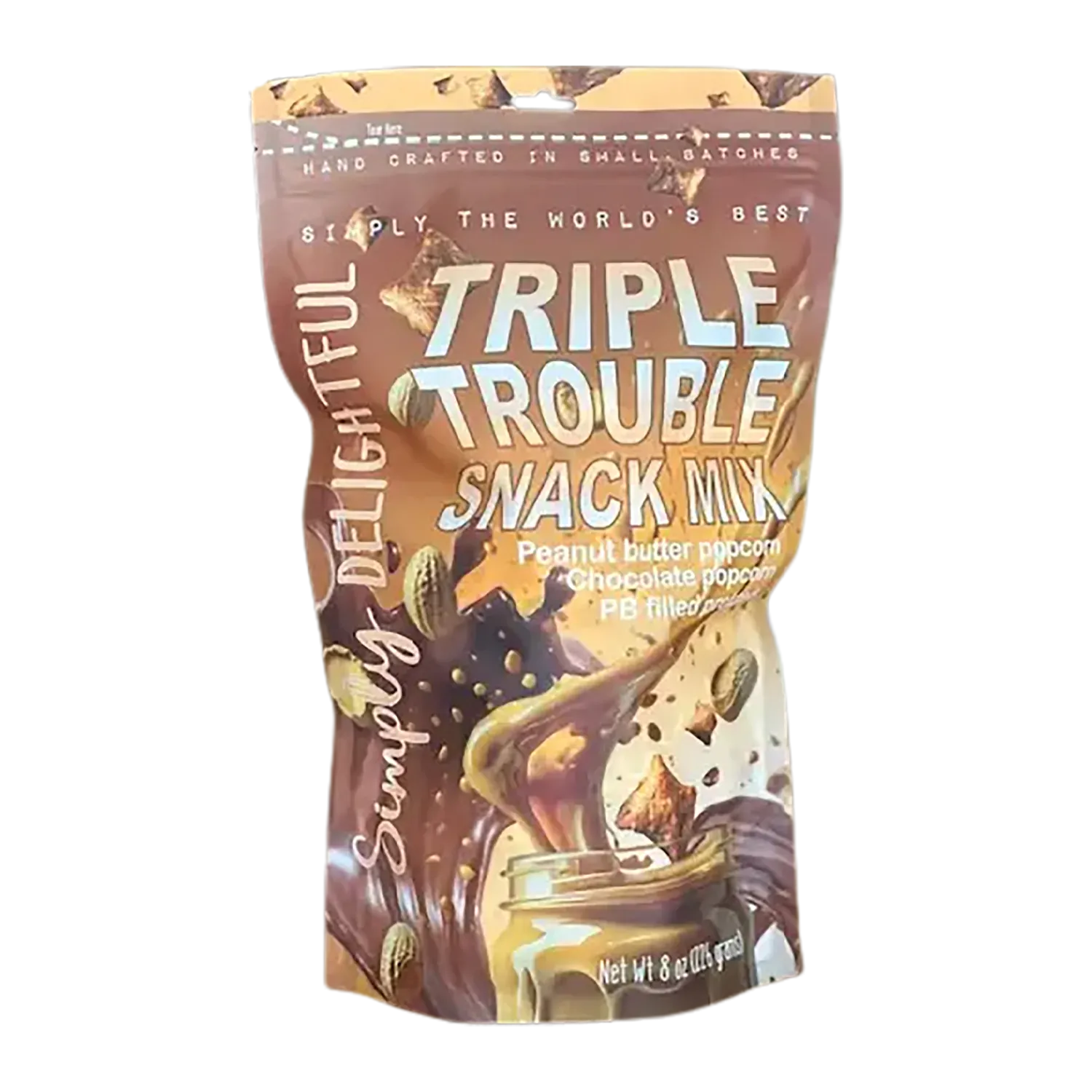Made in the USA, shelf-stable, and ready to snack on anytime, Triple Trouble is the ultimate treat for peanut butter and chocolate lovers alike.