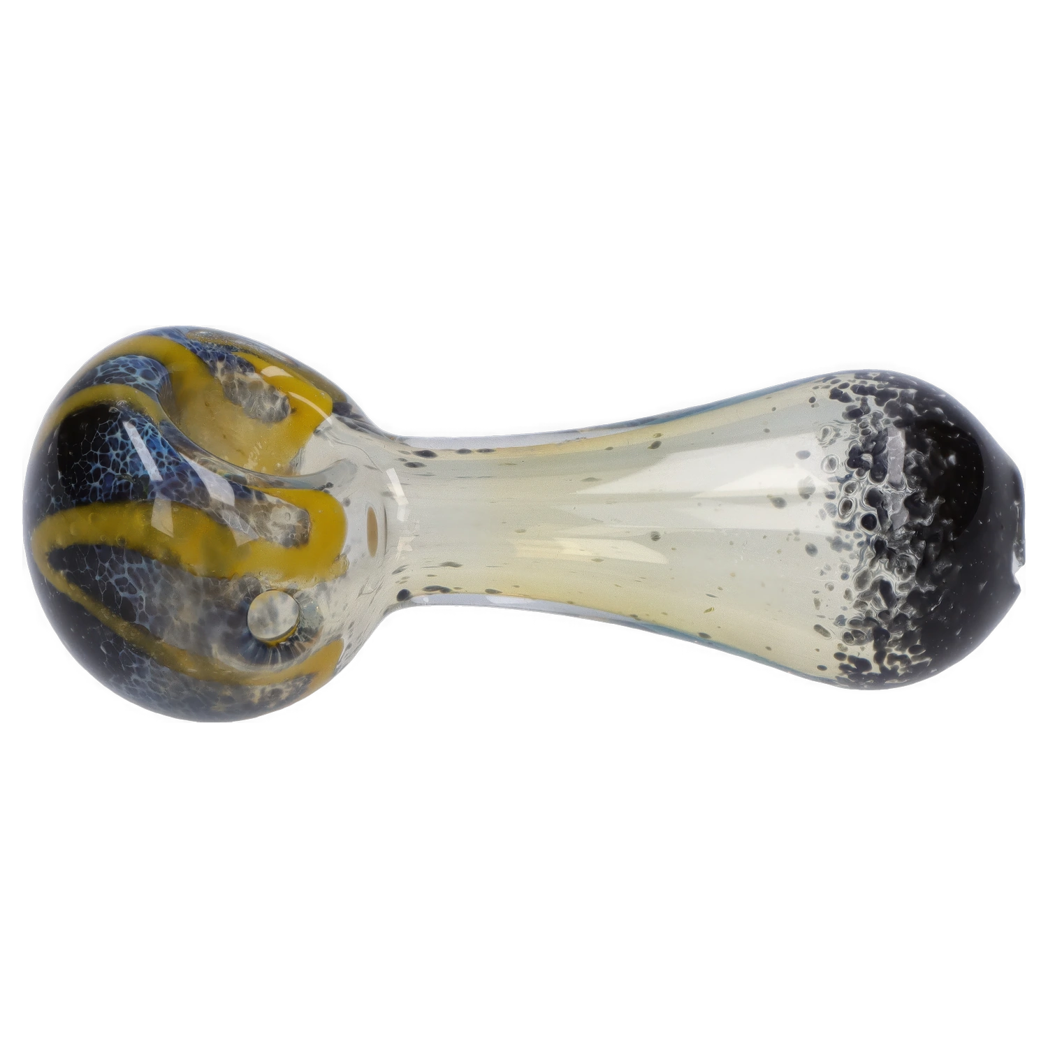 Looking for a compact pipe that blends style and functionality? This 3-inch hand pipe checks all the boxes! Its vibrant speckled design in bold yellow and blue tones not only stands out visually but also adds a playful touch to your smoking sessions. Perfect for those who love a bit of personality in their gear.