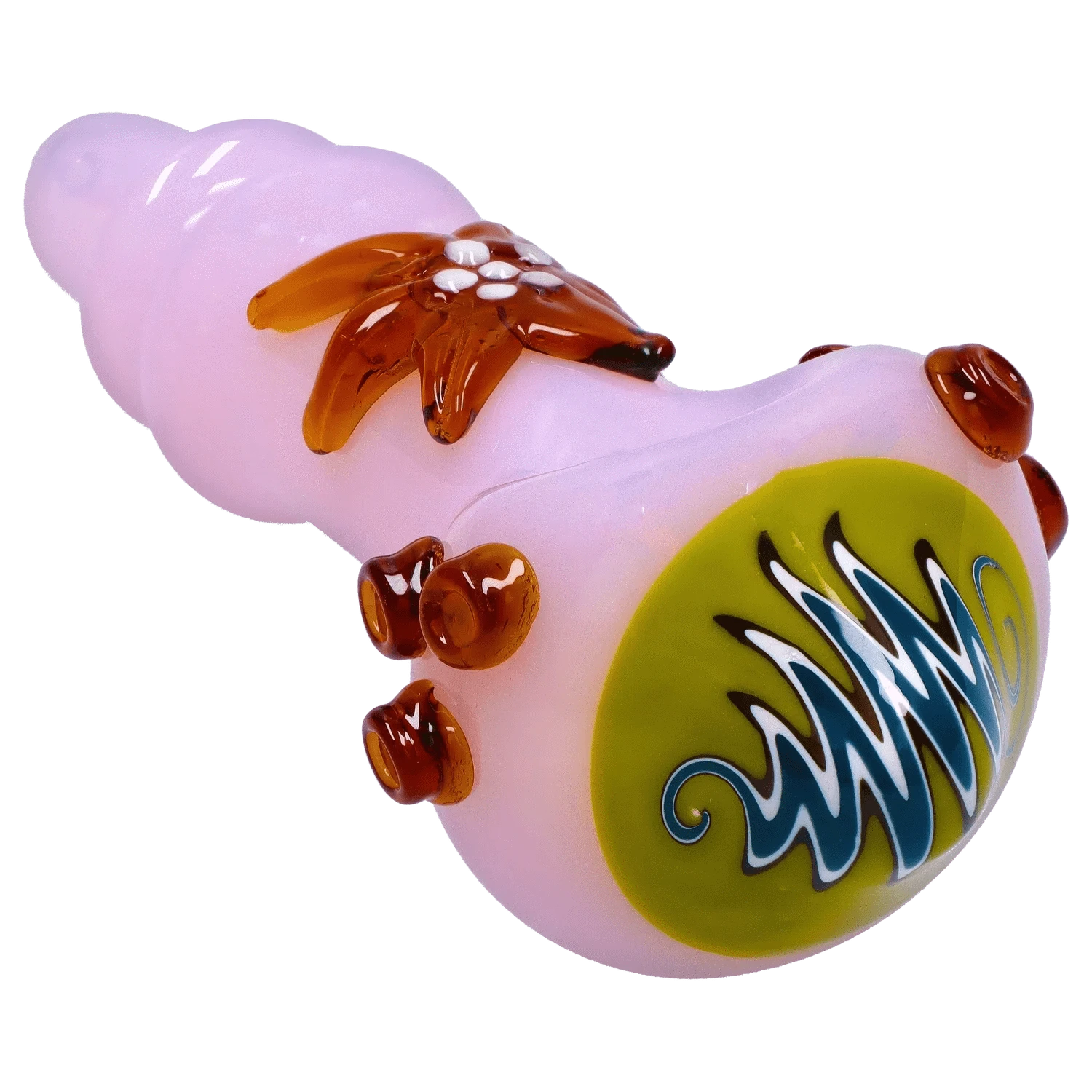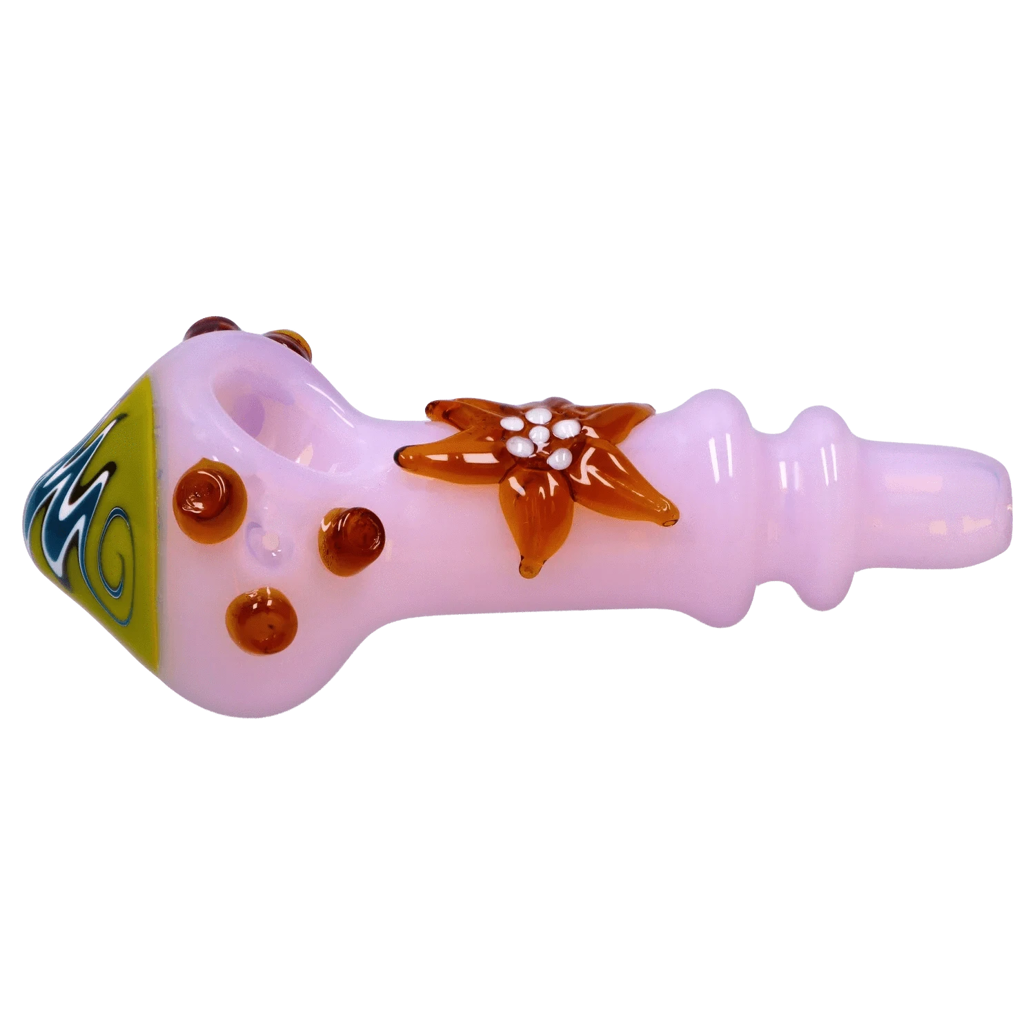 Shoot for the stars (or at least spark one) with the DHC Star Reversal Spoon Pipe — a 4.5-inch handcrafted beauty that blends bold swirl work with raised starburst accents for true celestial vibes. Whether you’re lighting up under the stars or couch-locked in comfort, this pipe delivers smooth pulls and standout style in one cosmic package.