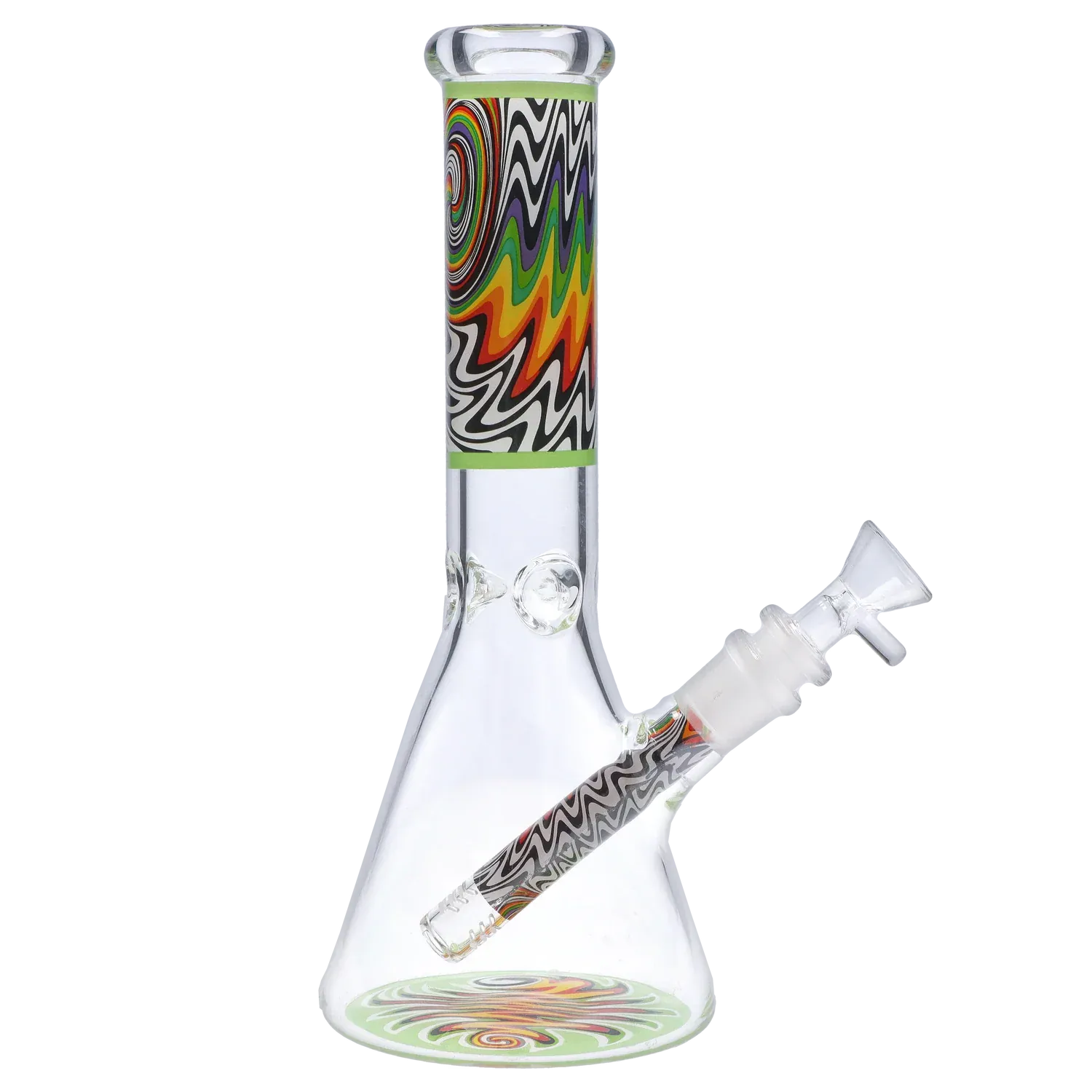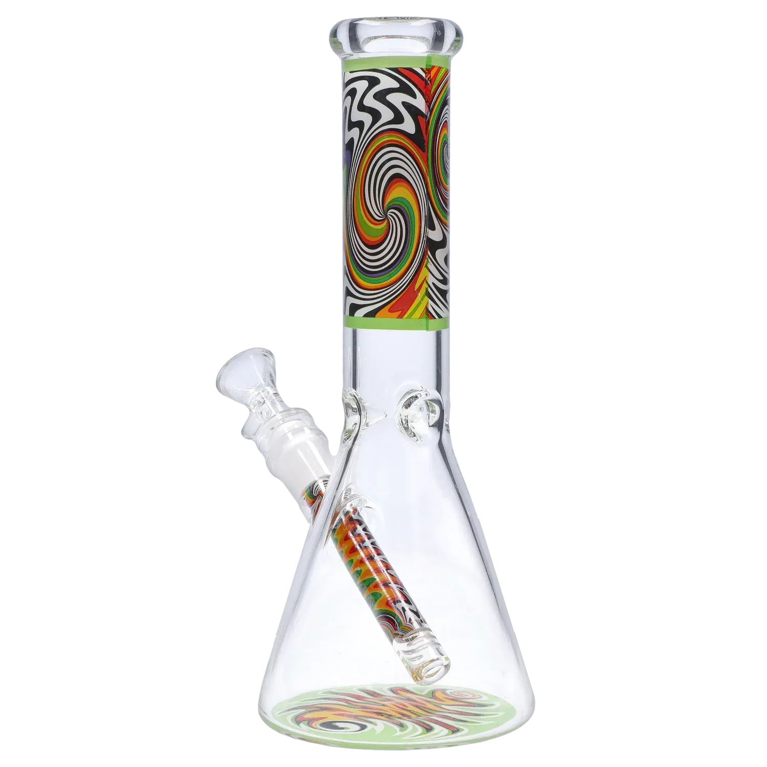 Add some color to your rotation with the DHC Wig Wag Beaker Water Pipe. Standing at 10 inches tall, this classic beaker gets a vibrant upgrade with eye-catching wig wag artwork along the neck and base. It’s built for smooth, reliable rips while serving serious style between sessions.